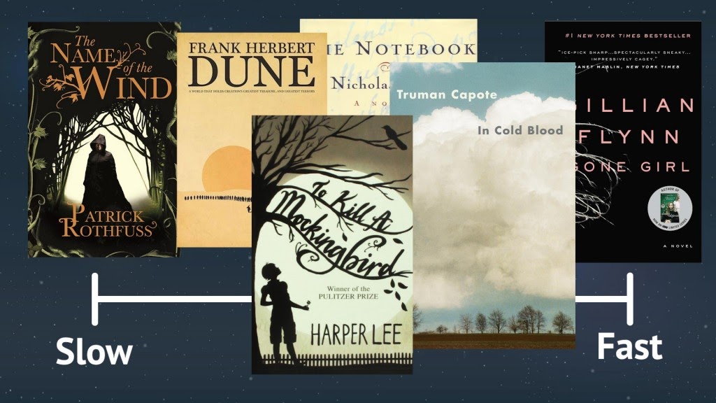Where the points are bunched together things are moving fast, the constant plot progression keeps readers engaged, but when things slow down, it gives readers a break and lets them stop to smell the flowers.